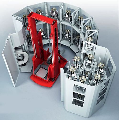 Het nieuwe RLS rotatielaadsysteem biedt een eenvoudige oplossing voor automatisering van serieproductie in de metaalverwerkende industrie. Het systeem bestaat uit een flexibel werkstukmagazijn en een robot voor pallethandling en is geschikt om een of twee bewerkingsmachines te beladen. De twee typen RLS800 en RLS1500 zijn geschikt voor werkstukken met een maximaal gewicht van 800 en 1500 kg. Aankoppeling van een RLS waardeert een bewerkingsmachine op naar een automatische cel,die geschikt is voor manloze 24/7-productie. De Soflex PCS celbesturing is gebruiksvriendelijk en voorzien van een geïntegreerde orderplanning. In de basisuitvoering wordt de bewerking aan de machine geprogrammeerd, terwijl de celbesturing de orderplanning doet.
