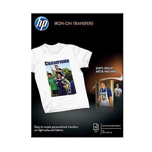 Dit HP transfer papier laat u toe eenvoudig gepersonaliseerd textiel te maken. Ideaal voor schitterende levensechte foto's en afbeeldingen op t-shirts, petjes, tassen, babykleertjes en nog veel meer. Het papier werd ontwikkeld voor witte en lichtgekleurde textielsoorten van katoen of een combinatie van katoen en polyester. Eenvoudig om te printen en aan te brengen.
