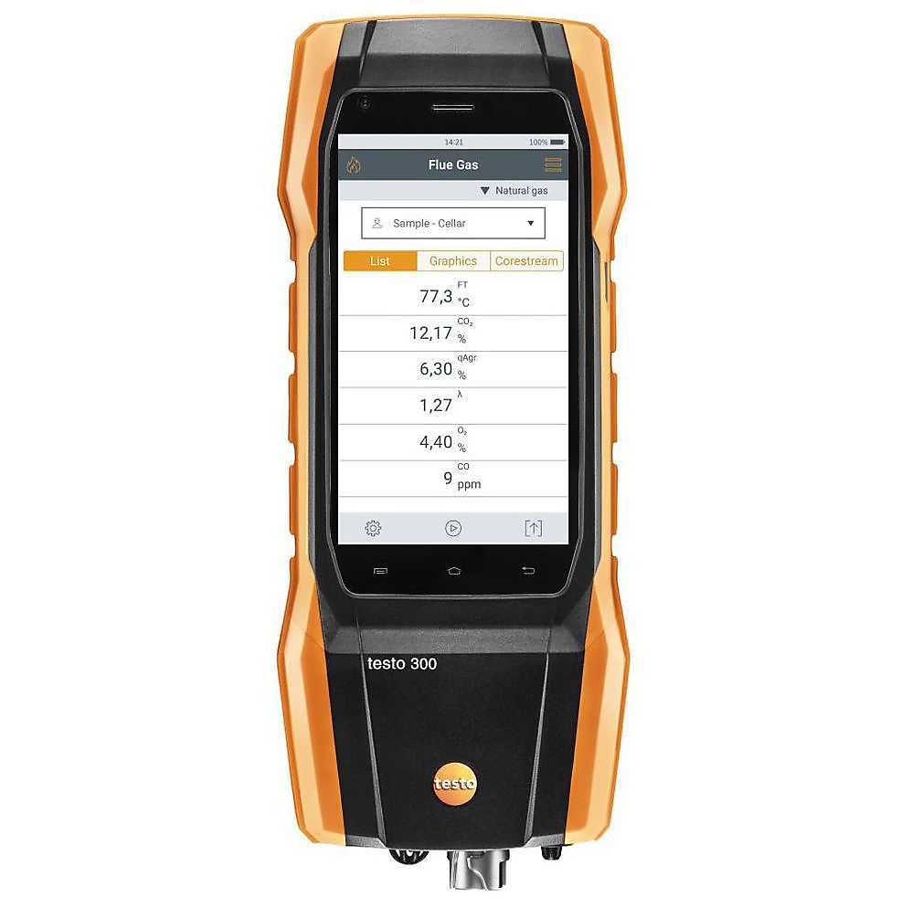 Weer een innovatie van Testo: de nieuwe rookgasanalyser testo 300 koppelt intuïtieve touch-bediening aan robuust design en uiterst efficiënte rapportage. Het grote 5” Smart-Touch-display maakt een bijzonder intuïtieve bediening mogelijk – net als bij een smartphone. In HD zijn daarop niet alleen alle meetwaarden als grafiek of tabel te zien, ook de rapportage wordt eenvoudiger. Bovendien is de testo 300 dankzij Smart-Touch-technologie van uit standby-modus met één druk op de knop klaar om te meten. Om het harde dagelijkse werk aan te kunnen is de testo 300 robuust en hoogwaardig geproduceerd. Alle toepassingen rondom de verwarmingsinstallatie zijn standaard opgeslagen in de testo 300. Dat maakt onder andere de volgende metingen eenvoudiger: rookgas, trek, CO, roetgetal,verschildruk, verschiltemperatuur, lektest of O2-luchttoevoer.