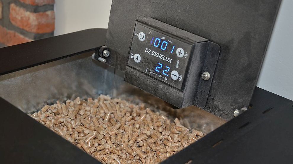 Vroeger hadden de eigenaars een elektrische open haard. Warm was het toen wel; gezellig niet. “Daarvoor hadden we een houtkachel. We moesten voortdurend stof afnemen en de plafondlijsten waren van kleur veranderd. De pelletkachel die we nu hebben, is dus echte luxe: geen stof, geen gevaar en je kan de warmte goed doseren.”